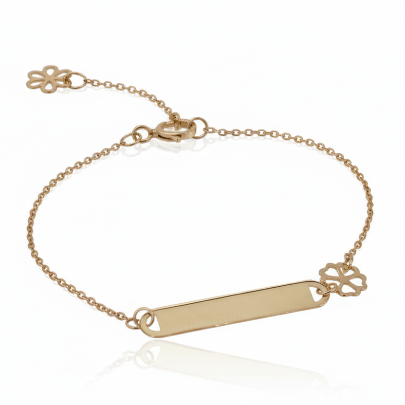 Adjustable children's gold with an engravable identity bar. An absolutely gorgeous NewBorn, Birthday, Christening given with love.⁣