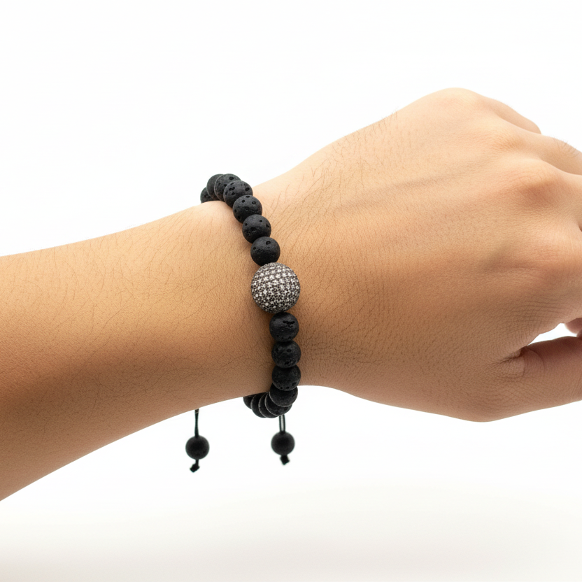 18 Karat Gold"Bold and timeless, the volcanic essence bracelet combines the raw strength of black lava beads with effortless style. Elevate your look today!"big sizeZirconium and Gold