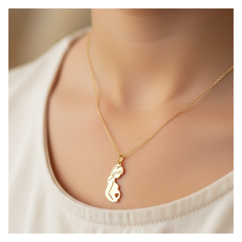 18 Karat Gold NecklaceChain with a lady pregnant perfect for Woman expecting a Baby
