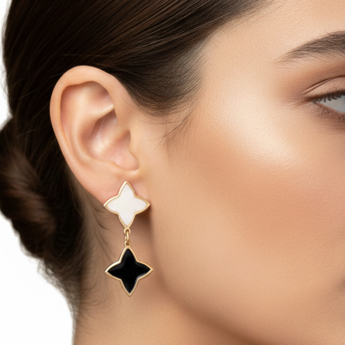 STAR BLACK AND WHITE EARRINGS is backordered and will ship as soon as it is back in stock.